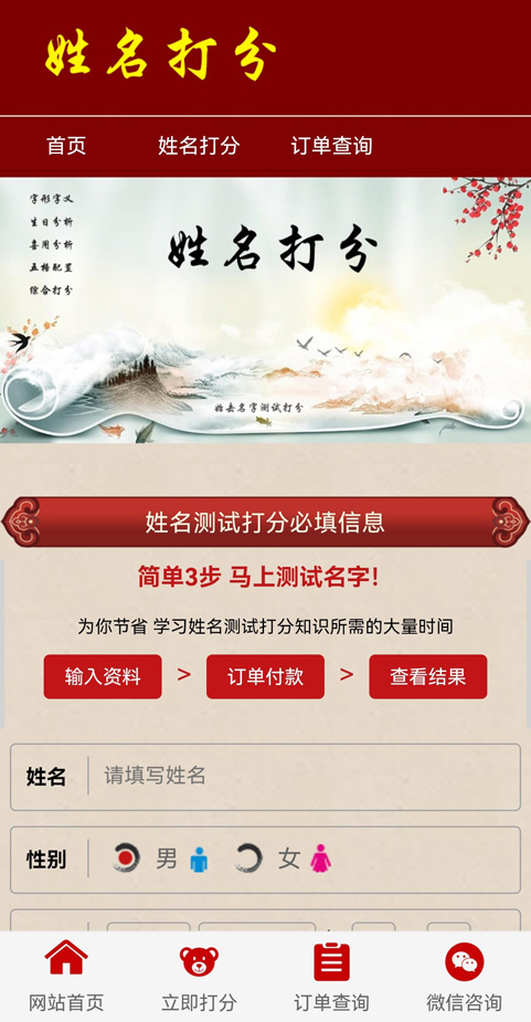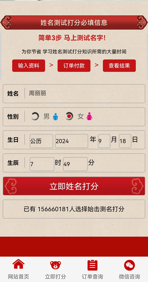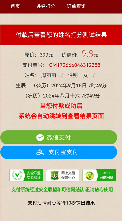 姓名测试,名字测试系统,支持微信\支付宝官方支付